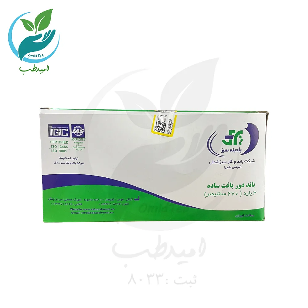 بافت کناری این باند باعث میشود لبهها ریش نشوند و هنگام پانسمان شکل یکنواخت و محکمی روی بدن حفظ شود. پادینه سبز یکی از برندهای معتبر داخلی در تولید ملزومات پانسمان و تجهیزات پزشکی است که کیفیت بالای محصولات آن در مراکز درمانی و بیمارستانها مورد تأیید میباشد.