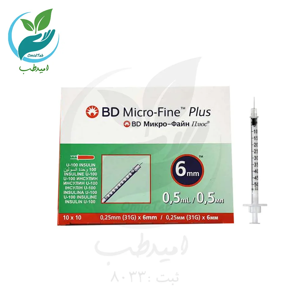 سرنگ انسولین بی دی حجم 0.5 میلی لیتر بسته 100 عددی