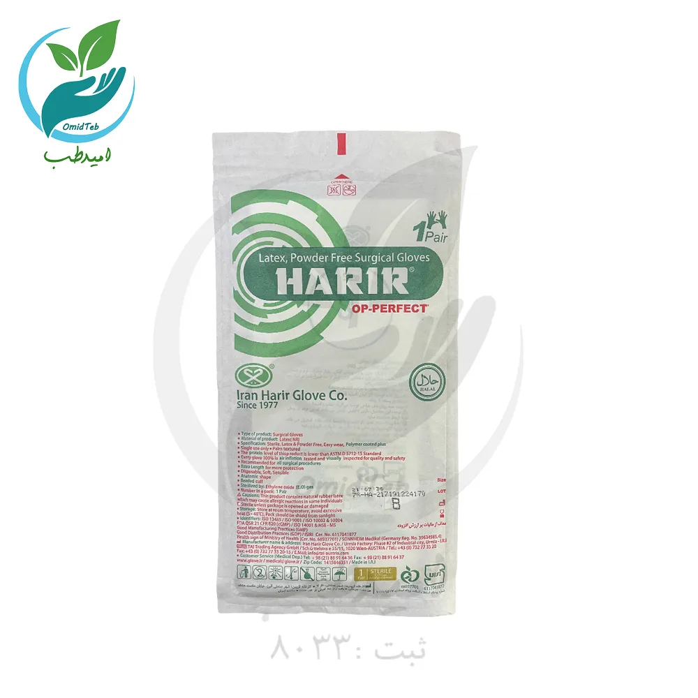 | سایر توضیحات | دستکش جراحی لاتکس بدون پودر مدل اوپی پرفکت پريميوم (OP-PERFECT Premium) ساخت شرکت دستکش حریر ایران می باشد. این نوع دستکش استریل بوده و برای جراحی مناسب می باشد. |