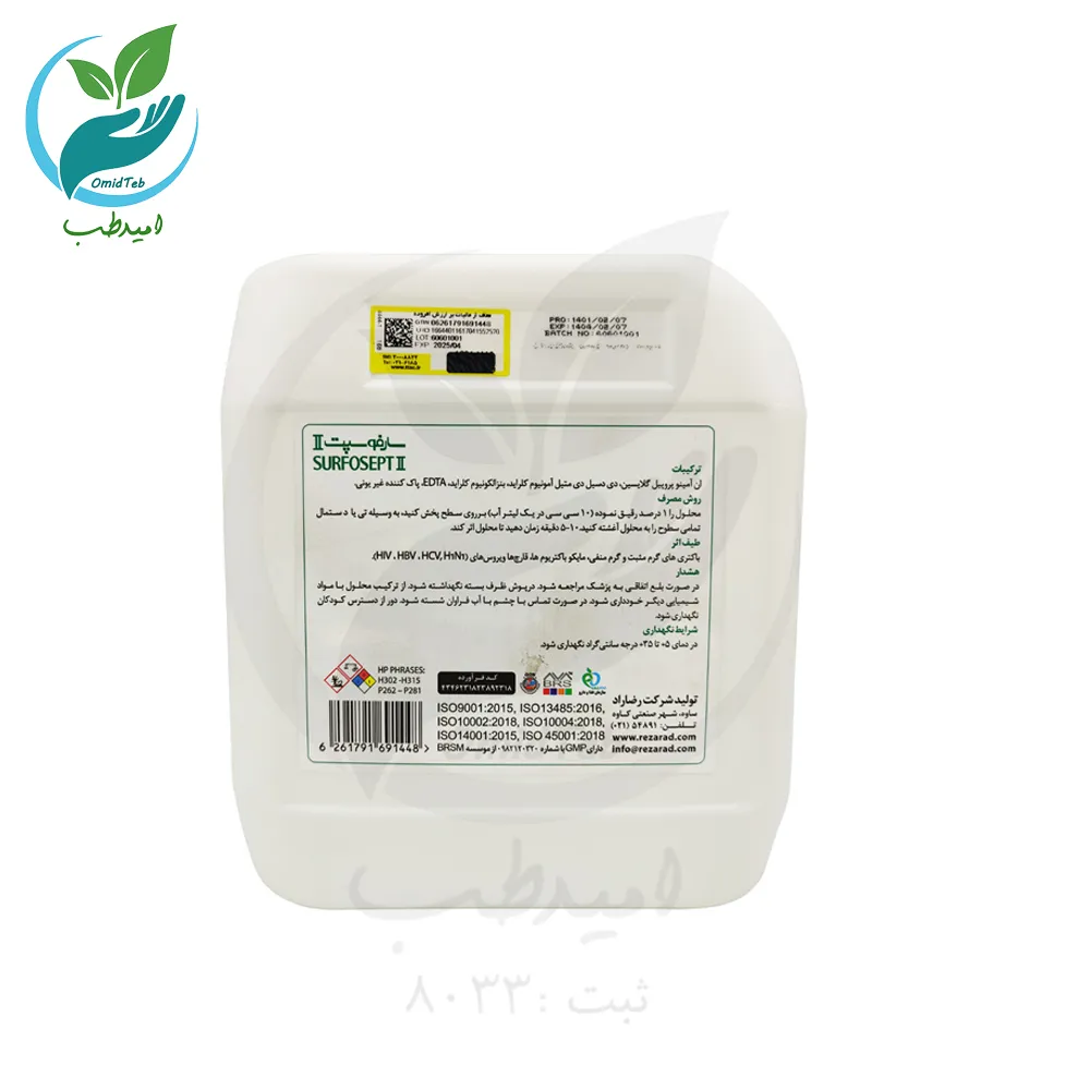 | نام محصول | محلول ضدعفونیکننده سطوح سارفوسپت 2 |