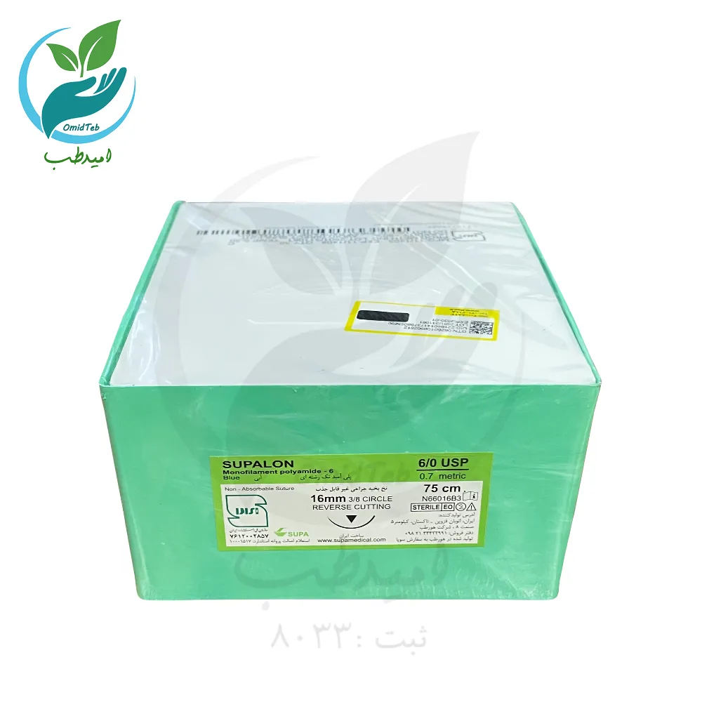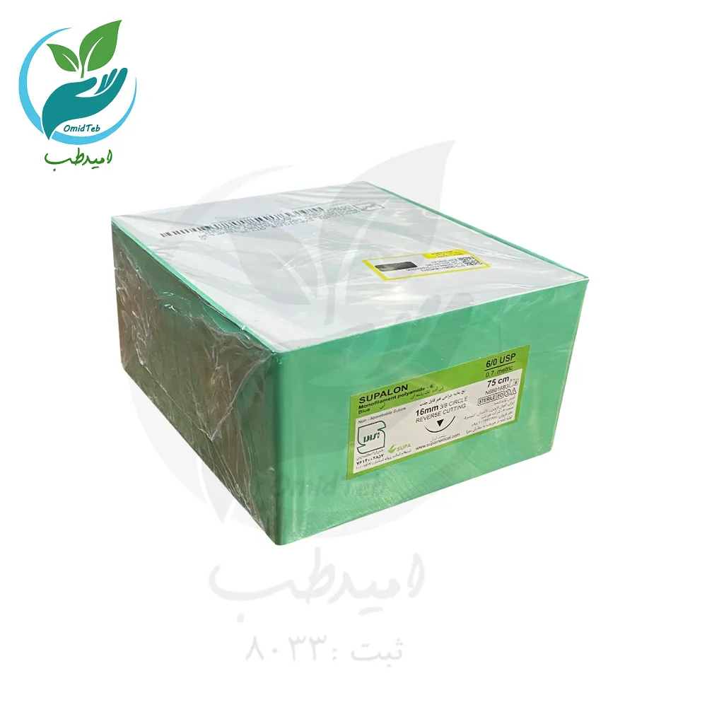 نخ بخیه نایلون 6/0 ریورس کات سوپا ظریفترین نخ بخیه نایلونی غیرقابل جذب تولید داخل است که برای بخیههای فوقالعاده دقیق و حساس، بهویژه در جراحیهای زیبایی، پلاستیک و ترمیمی پوست به کار میرود.